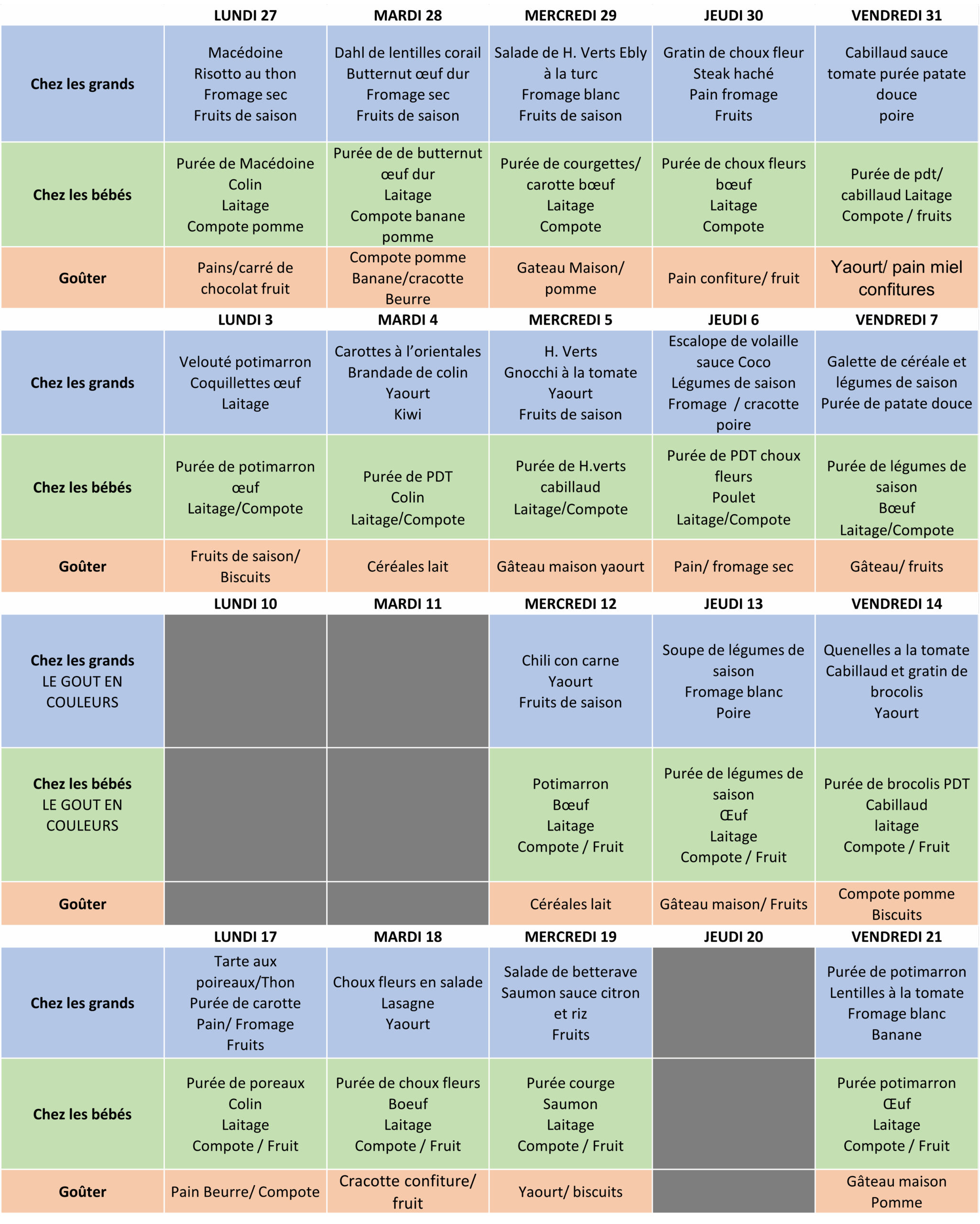 Menu du mois